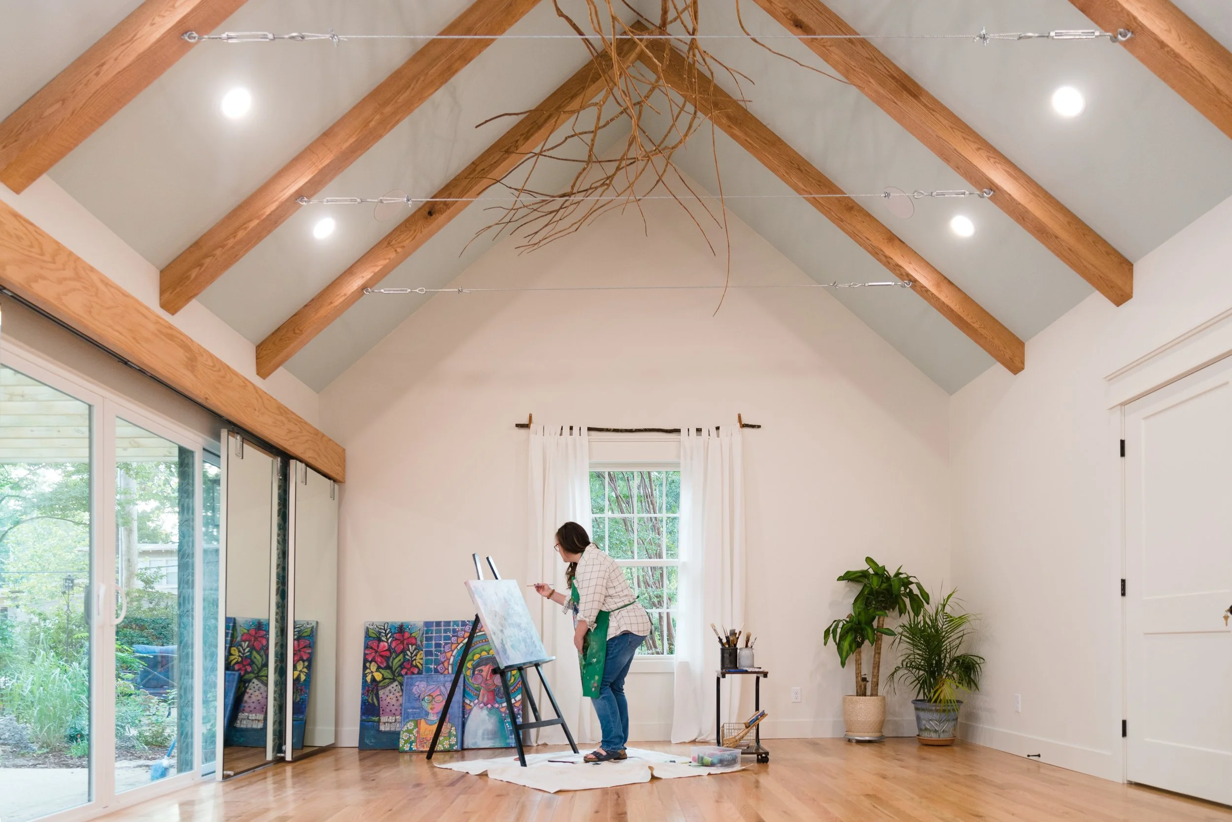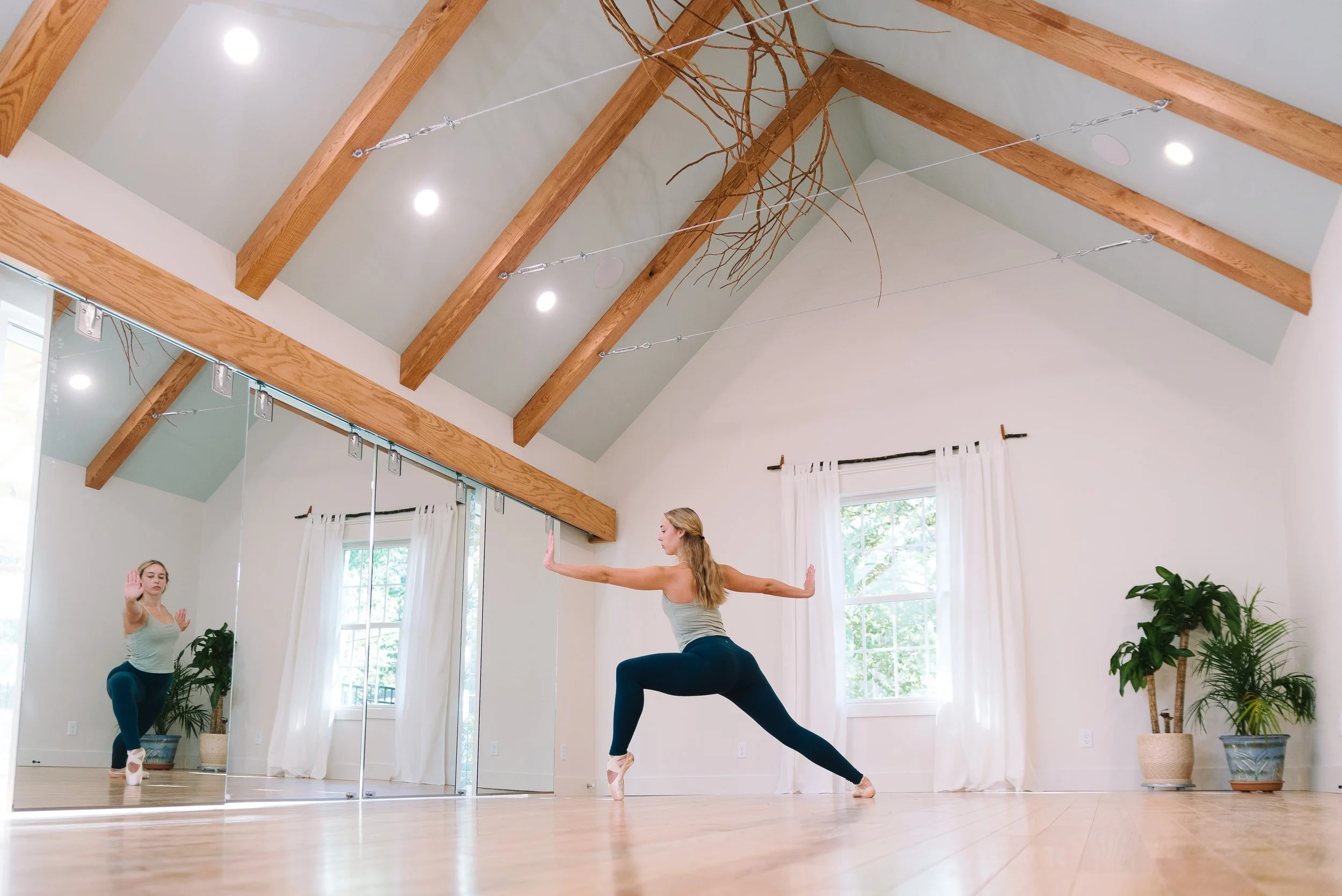 Designed with creatives in mind, The Artist’s Cottage can function as a rehearsal space for dancers and musicians, a studio for visual artists, a calming venue for yoga classes, or a backdrop for photo shoots. One wall has mirrors that can slide open or remain closed.